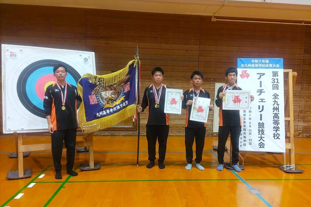 九州高校総体のアーチェリー競技が21日、22日の両日、佐賀で行われ、男子団体の部で串木野高校が初優勝を果たしました。