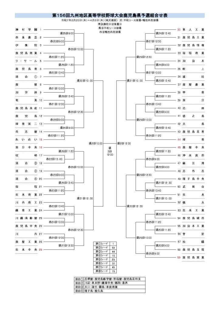 九州高校野球鹿児島県大会の組み合わせが決まりました。