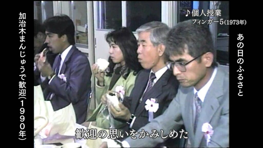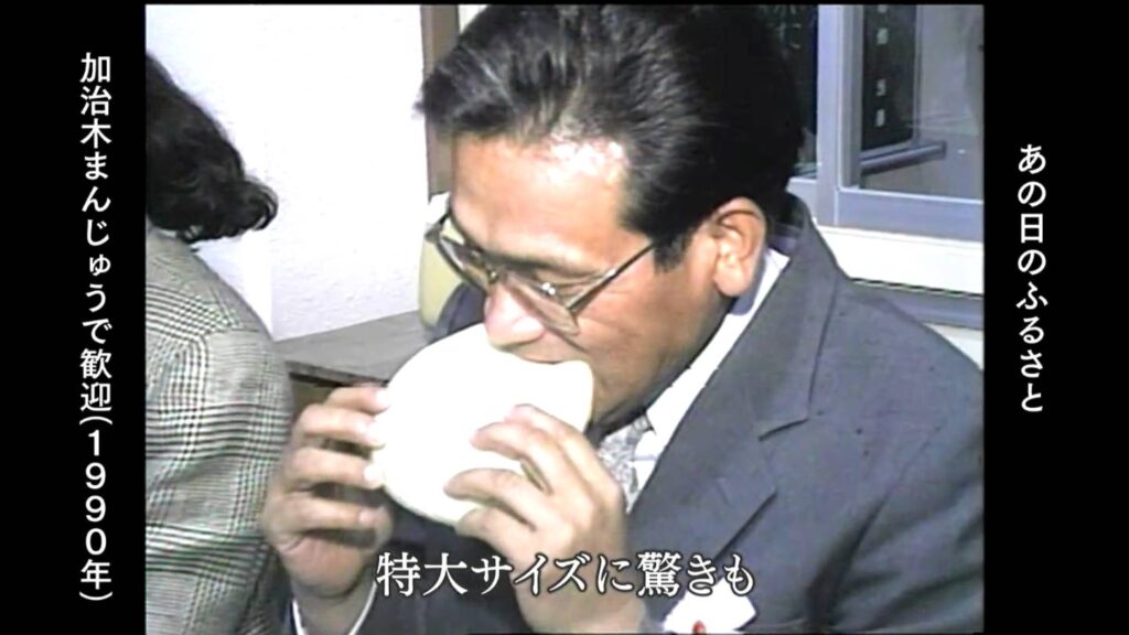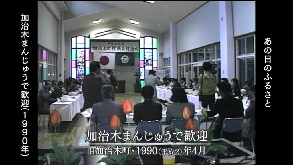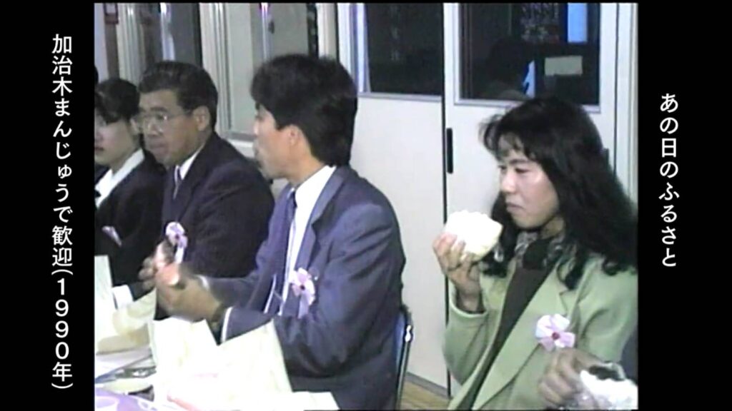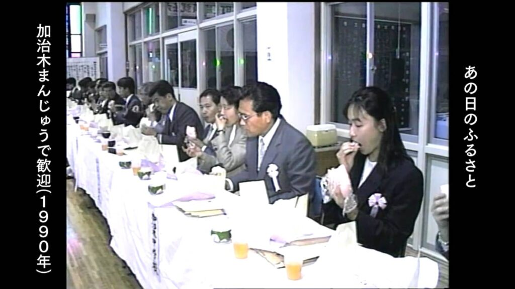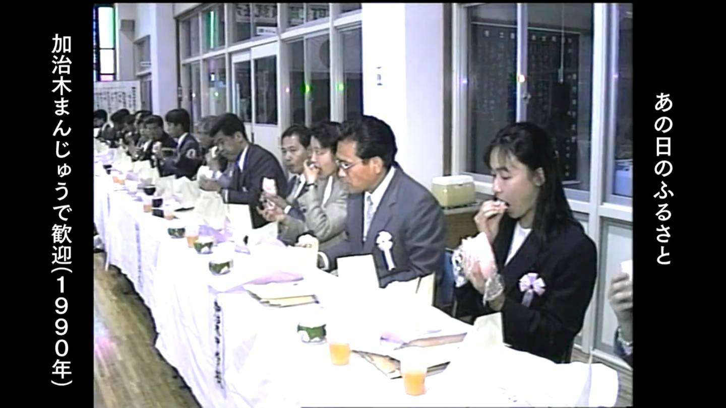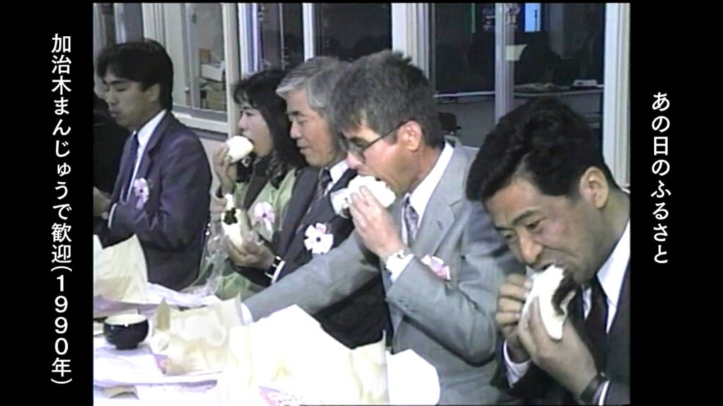 加治木まんじゅうで歓迎 旧加治木町(平成2年4月)