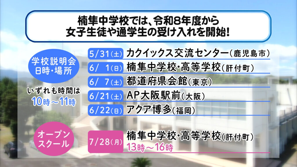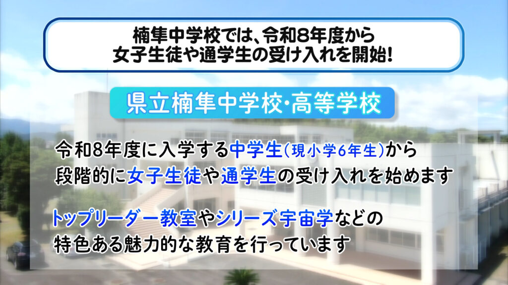 楠隼中学校では、令和8年度から女子生徒や通学生の受け入れを開始! ほか