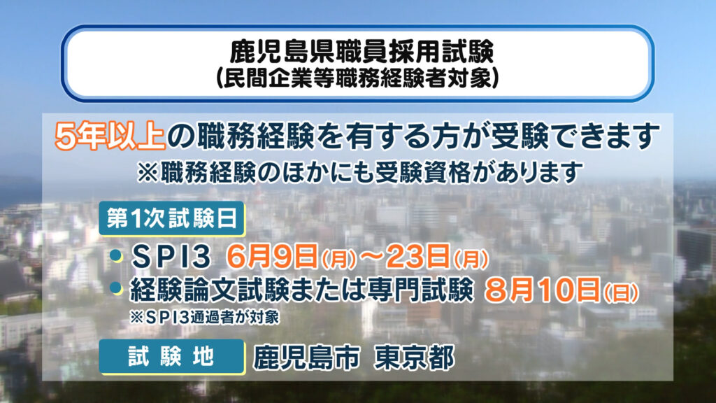 鹿児島県職員採用試験(民間企業等職務経験者対象)