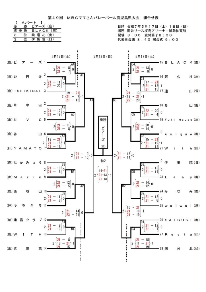 後援:鹿児島県・鹿児島県教育委員会・鹿児島市・公益財団法人鹿児島県スポーツ協会・鹿児島県バレーボール協会・南日本新聞社