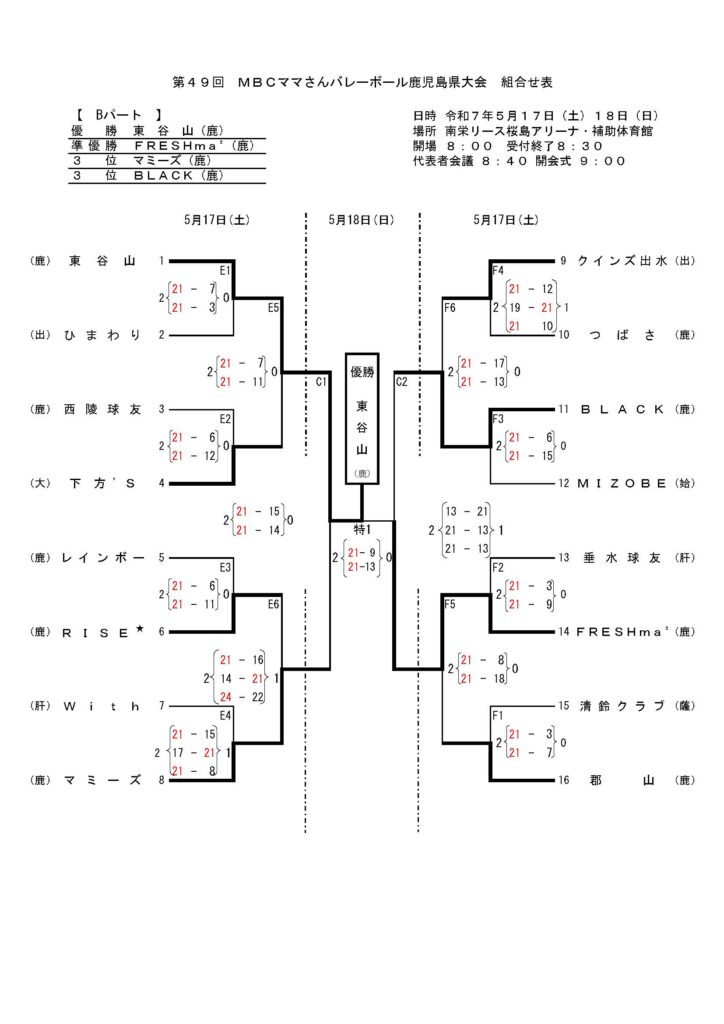 | 準優勝 | BLACK(鹿児島地区) |