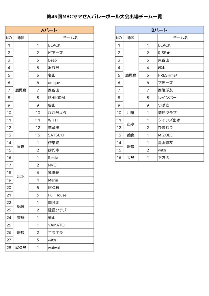 出場チーム一覧