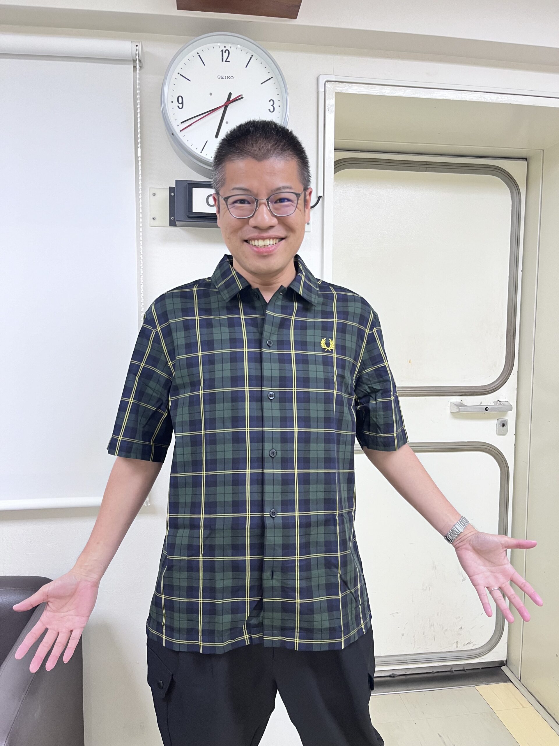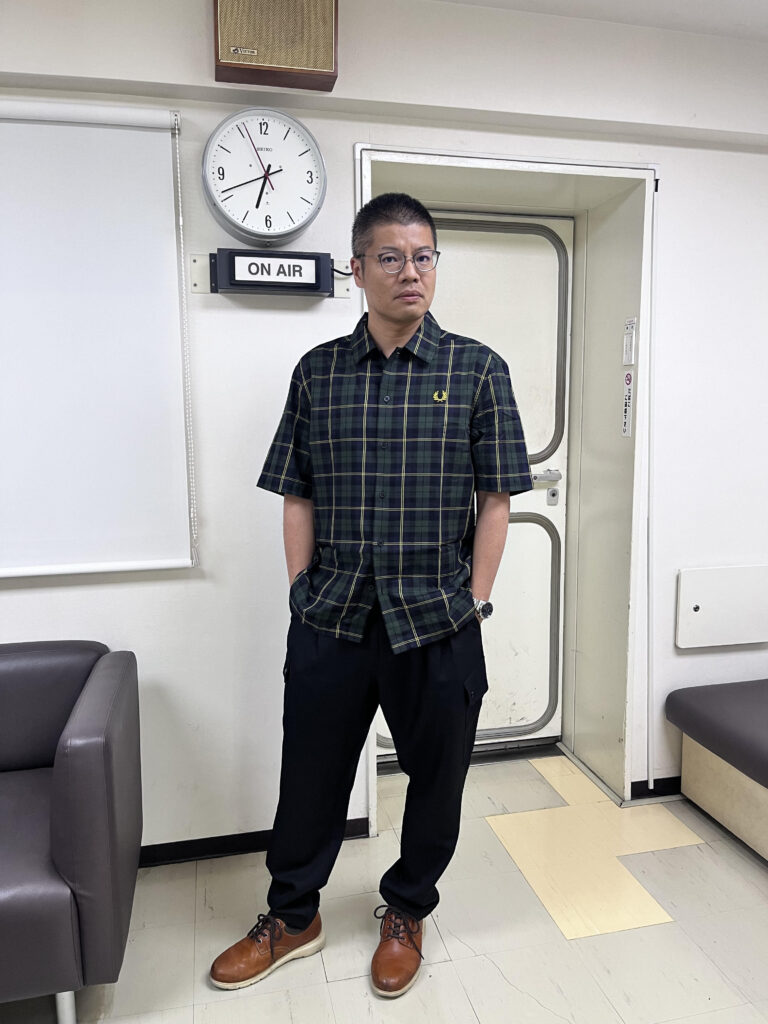 こちらもすこーしだけ光沢のある上品な生地なので、トップスとの相性も🙆🏻♂️‼︎ボトムスを黒単色にしたことで、シャツの鮮やかさを引き立たせてくれていますね✨