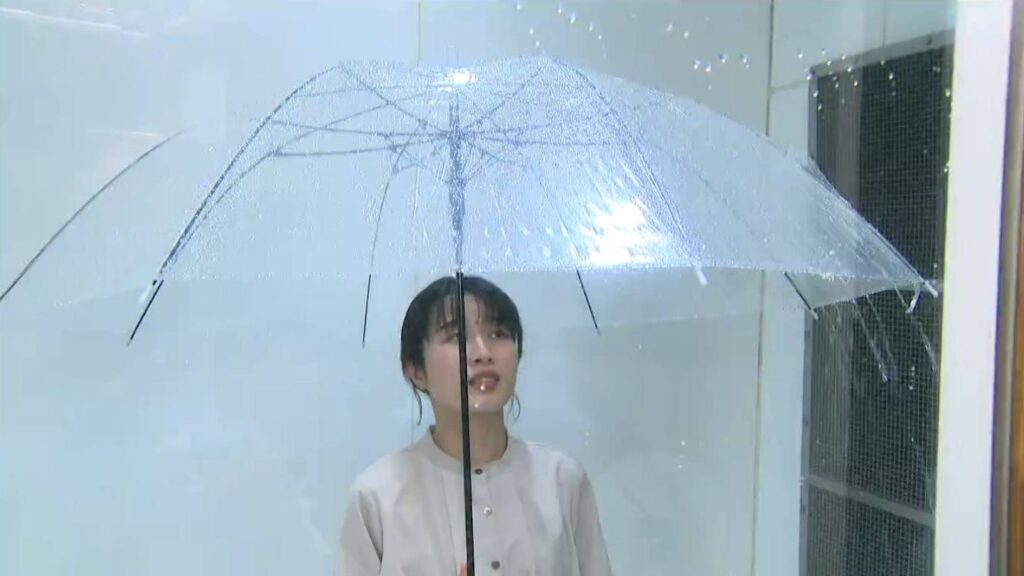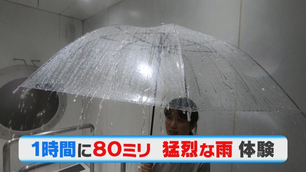 過去に薩摩川内市の消防局防災研修センターで猛烈な雨を体験した様子です。