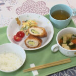 1. 「ハート形 目玉焼き&スクランブルエッグ」と「オートミールマフィン」