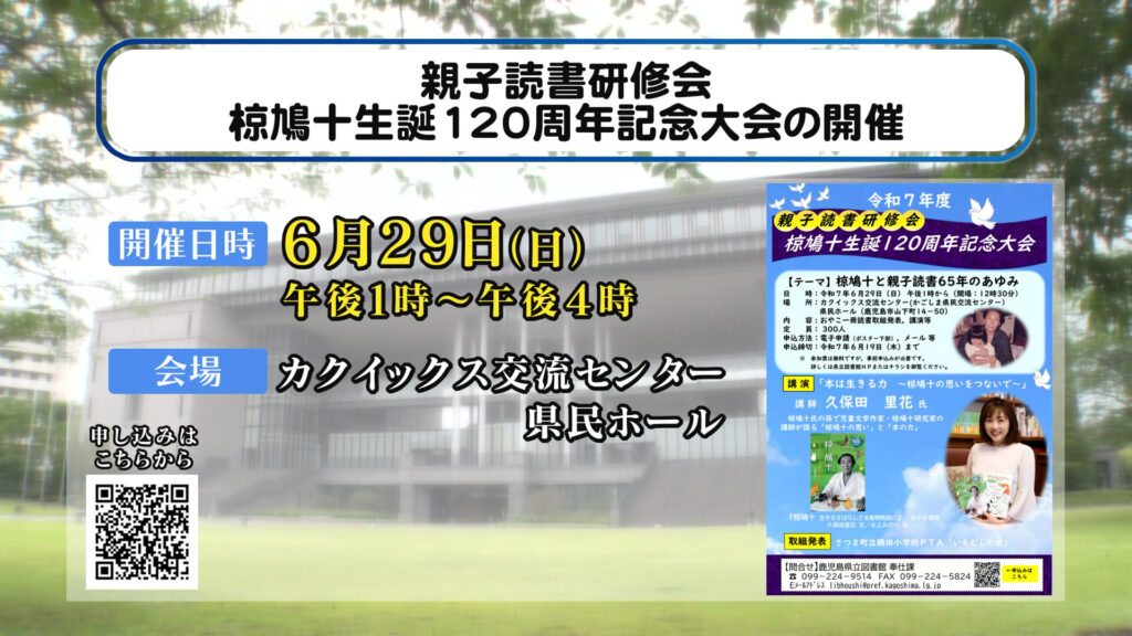 親子読書研修会椋鳩十生誕120周年記念大会の開催 ほか