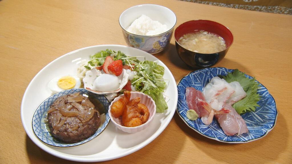 1. 「ハート形 目玉焼き&スクランブルエッグ」と「オートミールマフィン」