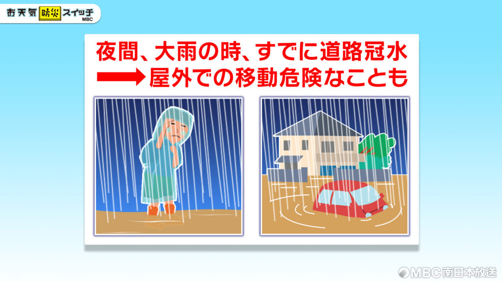 夜間に大雨となり、すでに道路が冠水し、移動が危険なこともあると思います。