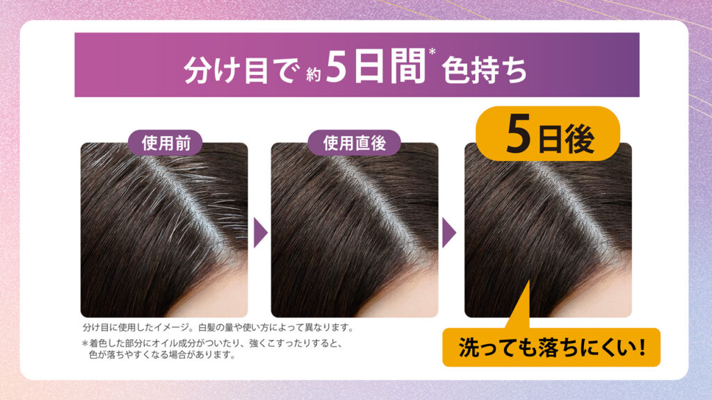 だから、分け目に使って、なんと!色持ち約5日間を実現!