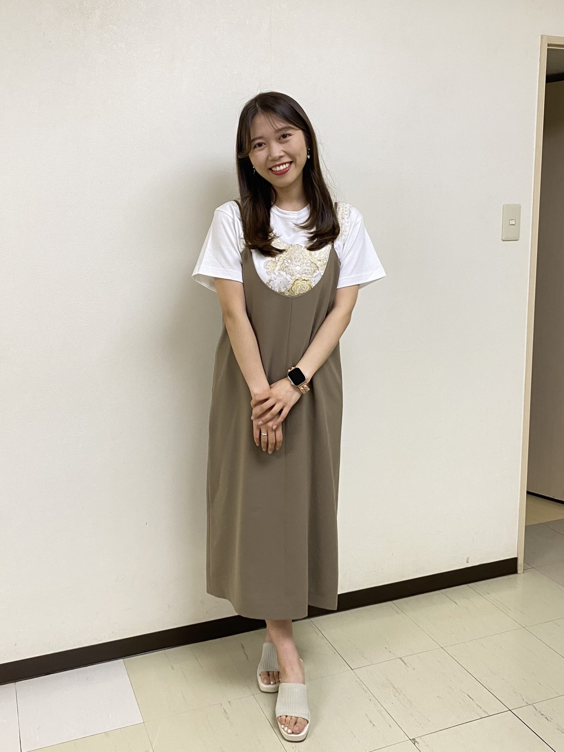 カーキベージュ色のストーンとしたストラップワンピース🤎