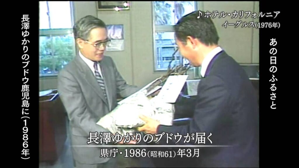 長澤ゆかりのブドウが届く 県庁・1986(昭和61)年3月