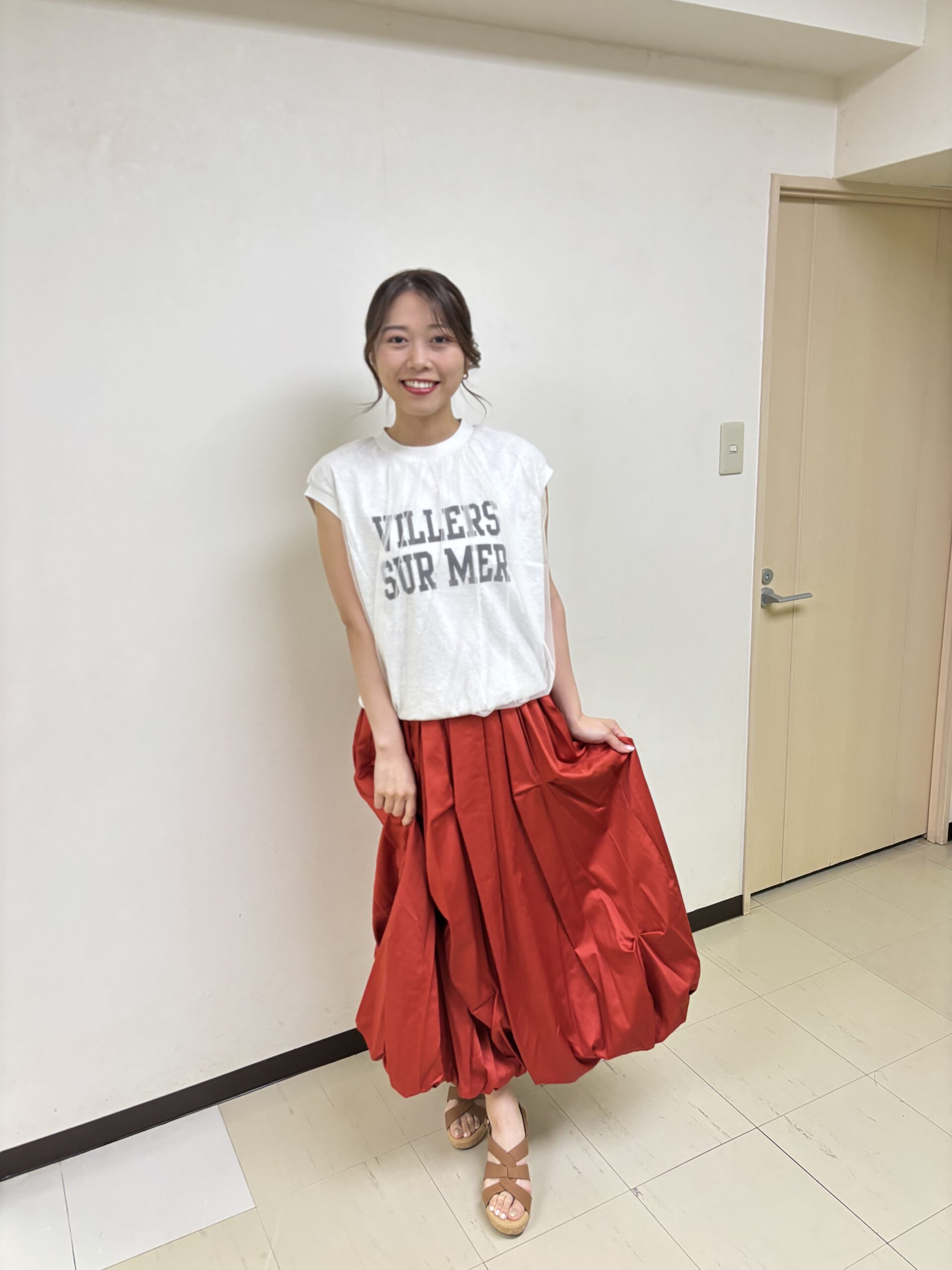 光沢のある朱色が存在感のあるバルーンスカート🎈