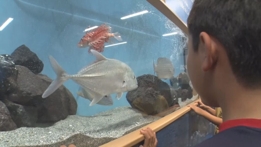 展示の1つ「錦江湾の宝を釣り上げろ!」にお手伝いとして名乗りを挙げたのが元祖釣りガールの上園リポーター。無事に釣り上げ、展示することができるのか。