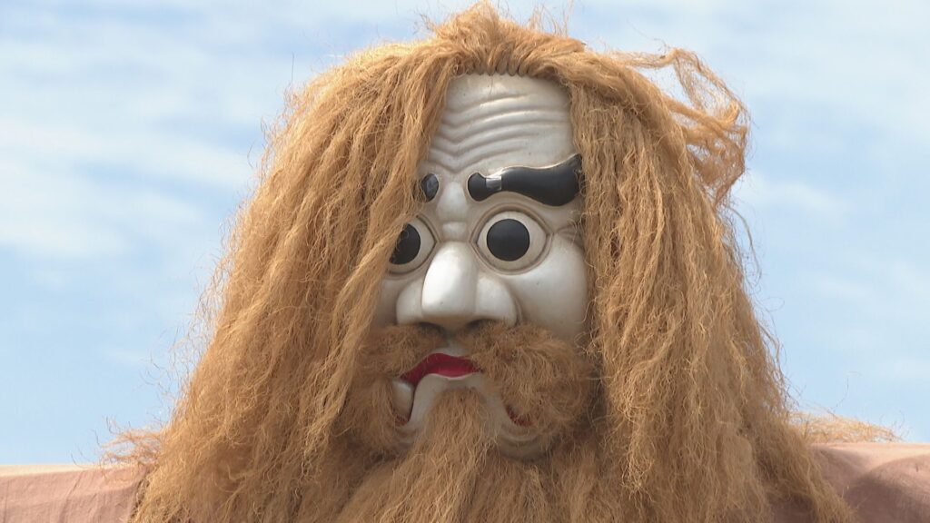 また、八幡神社には仮面神「大王殿(デオドン)」が現れ、神事を見守る 。
