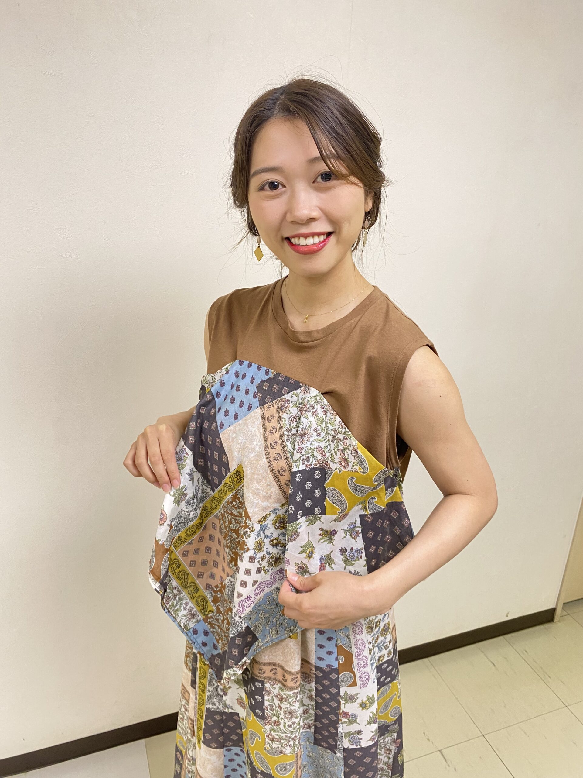 柄の部分がスカーフのようにひらひらと胸元にくっついていて、ふわっと揺れるのが素敵✨