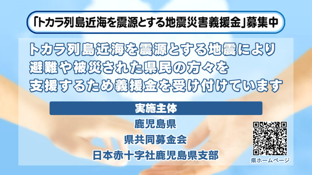 「トカラ列島近海を震源とする地震災害義援金」募集中