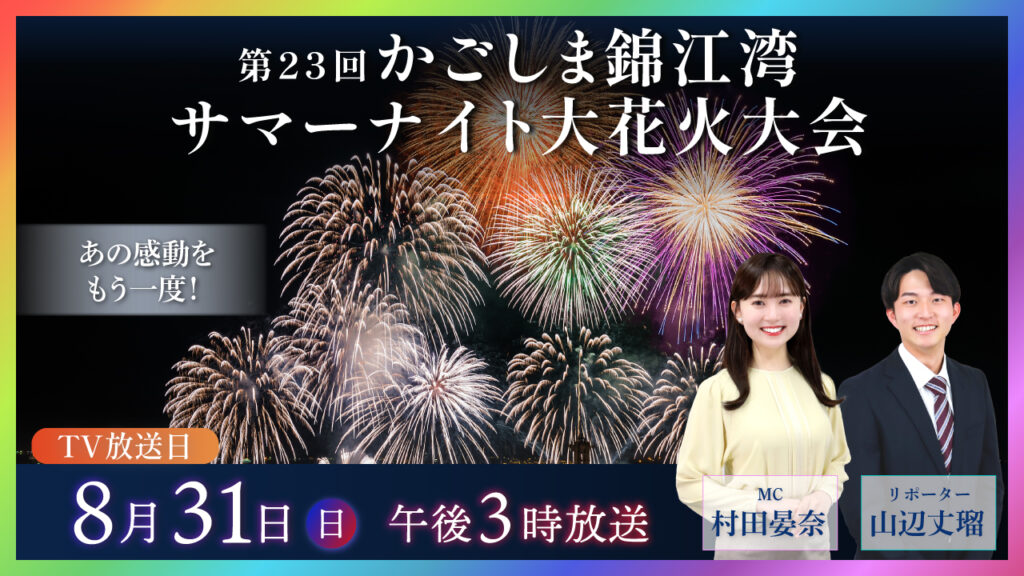 今年は、世界文化遺産「明治日本の産業革命遺産」の登録10周年を記念した創作花火や恒例の二尺玉同時打ち上げ、音楽花火、そして九州の花火師たちによる競演など、華麗な花火が錦江湾の夜を彩りました。