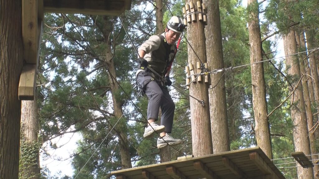 また、川辺町では、森の中でアドベンチャー体験した後、商店街に向かい、ユニークな時計店や老舗の刃物店などに立ち寄ります。
