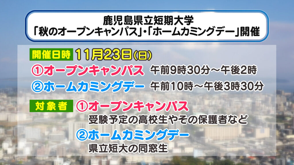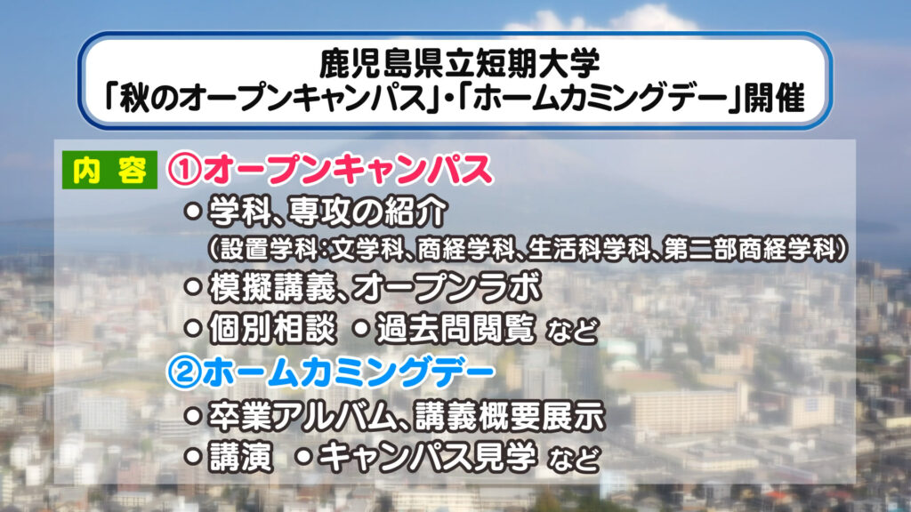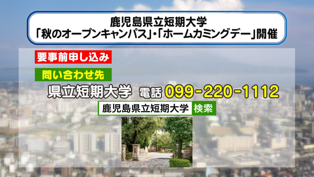 鹿児島県立短期大学「秋のオープンキャンパス」・「ホームカミングデー」開催 ほか