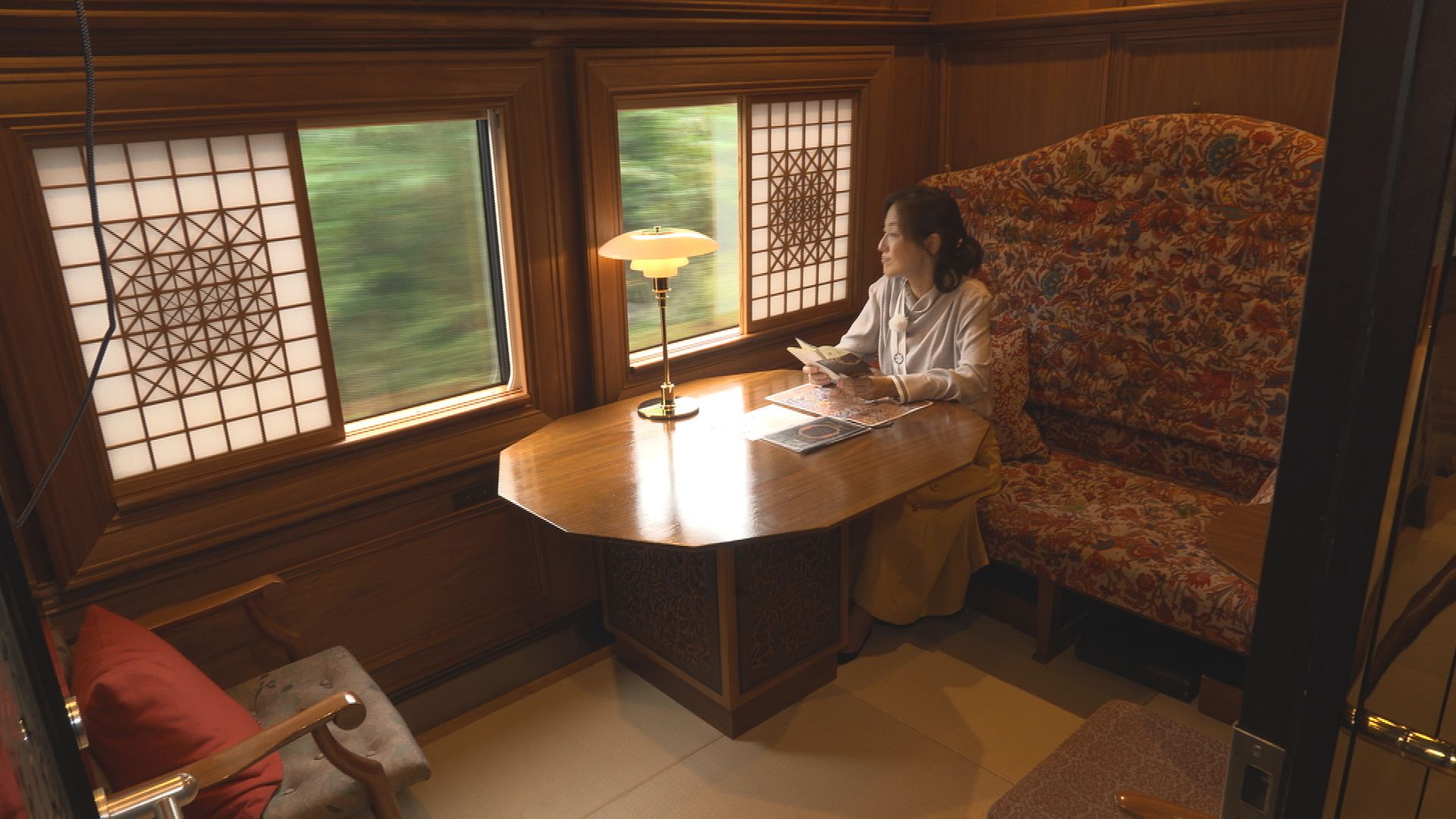 ベテランの豊平アナは、今年5周年を迎えた観光列車「36ぷらす3」に乗って優雅な癒しのご褒美旅へ。