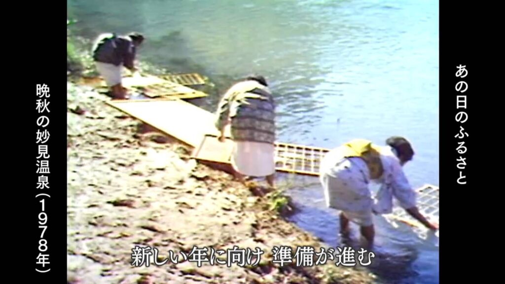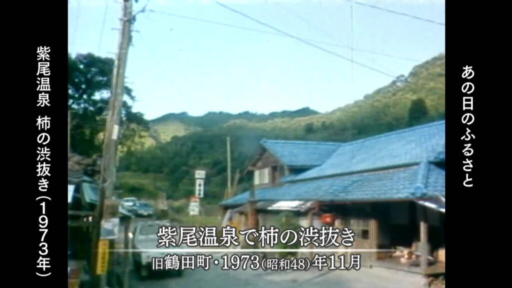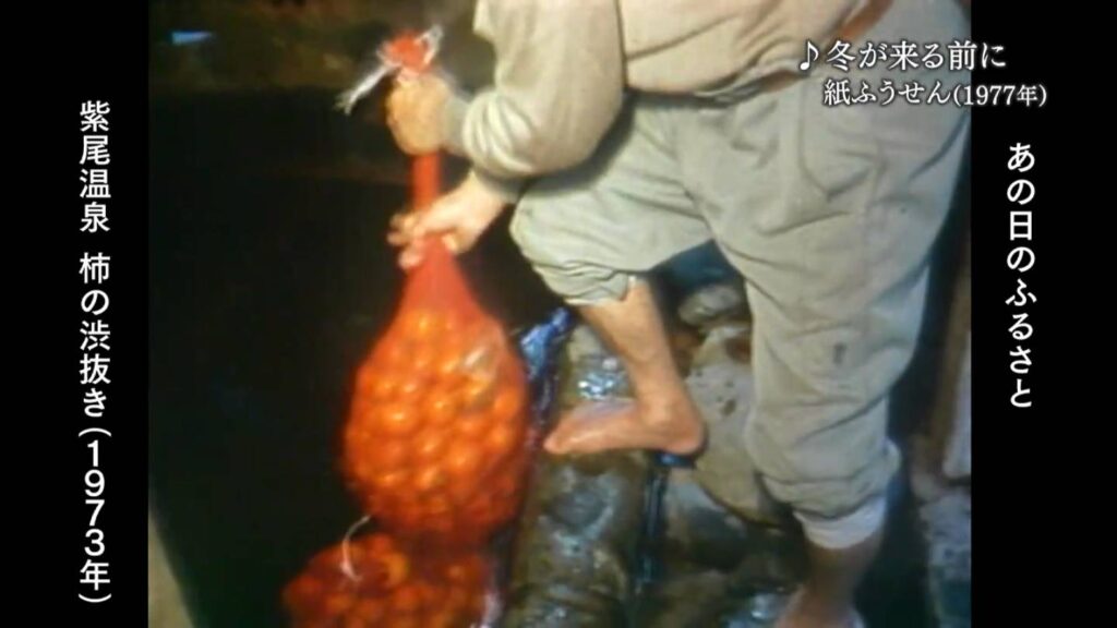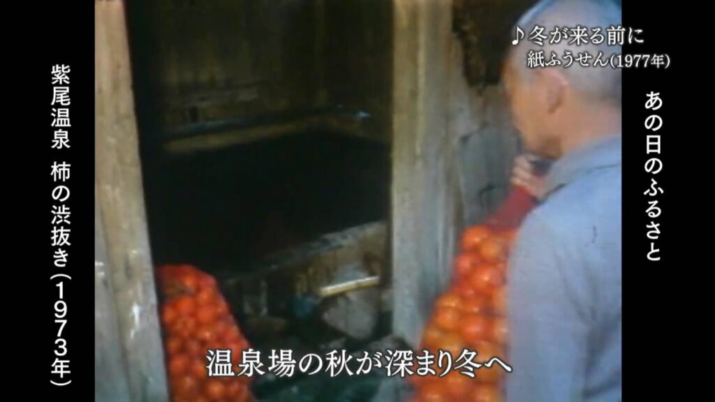 紫尾温泉で柿の渋抜き 旧鶴田町・1973(昭和48)年11月