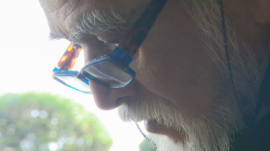 鋭い目線が向かうのは、1本の糸と常にアイデアを書き留めるノート。