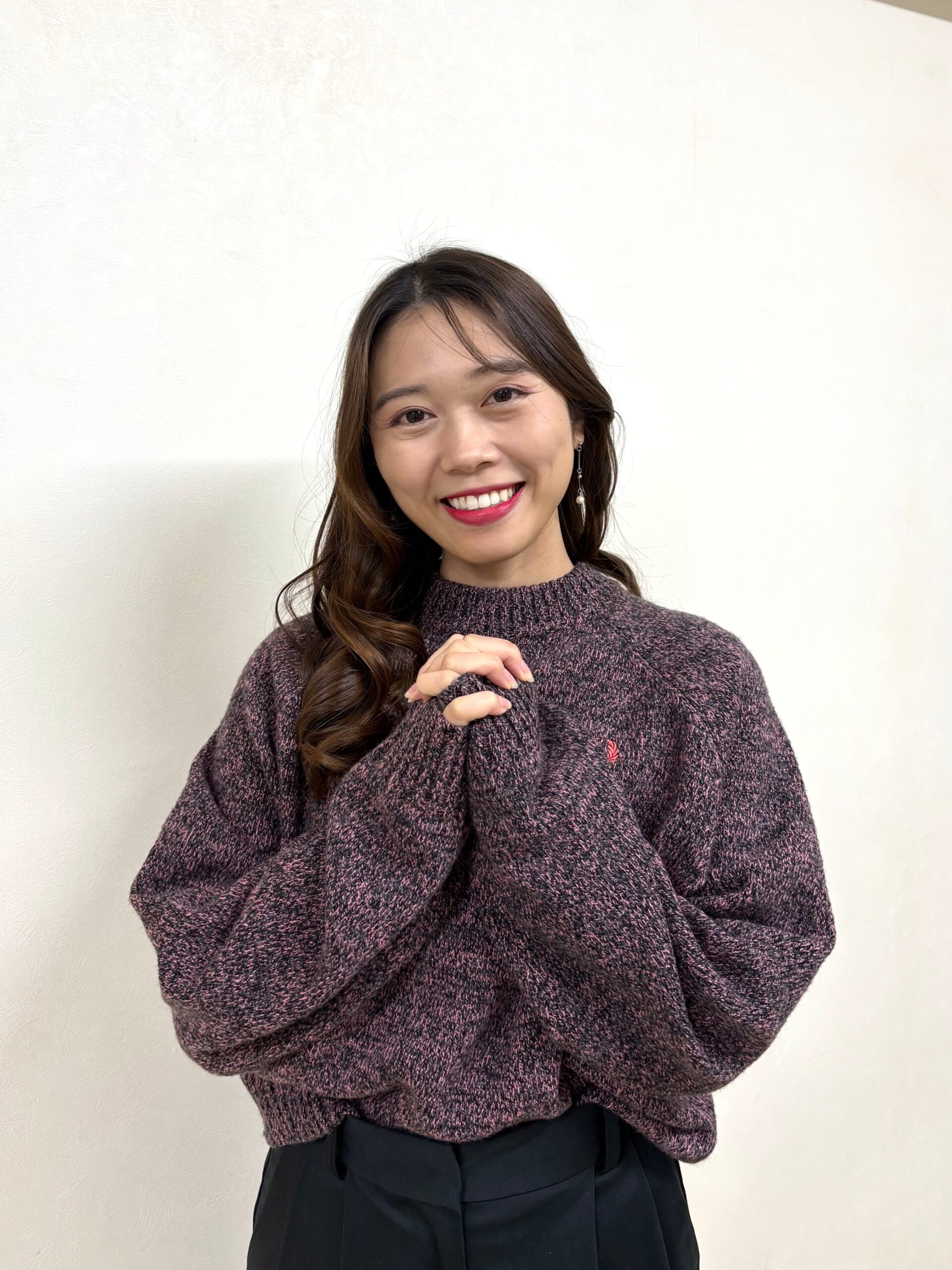 ピンクと黒の毛糸で編まれた大人かわいい一枚🩷