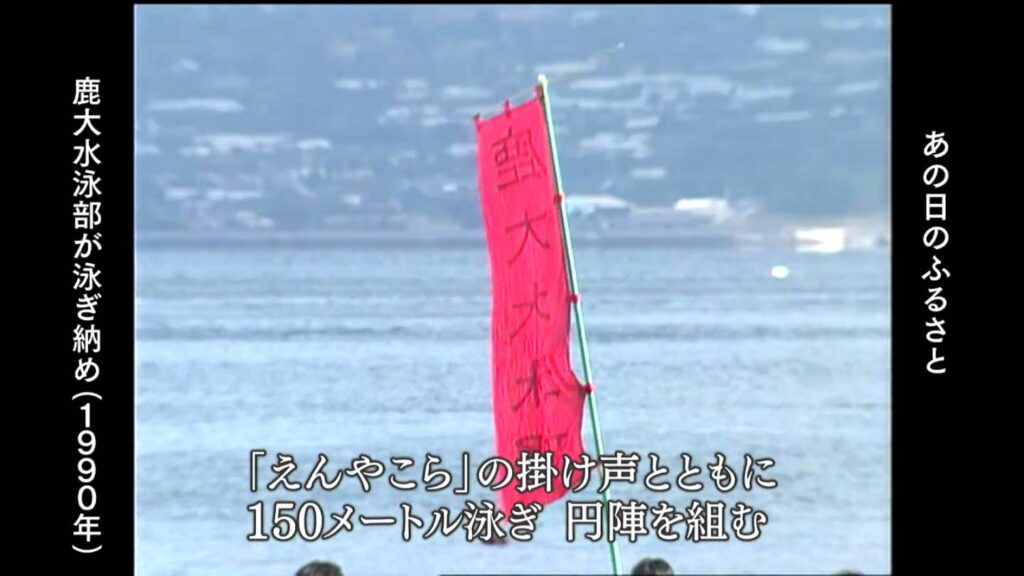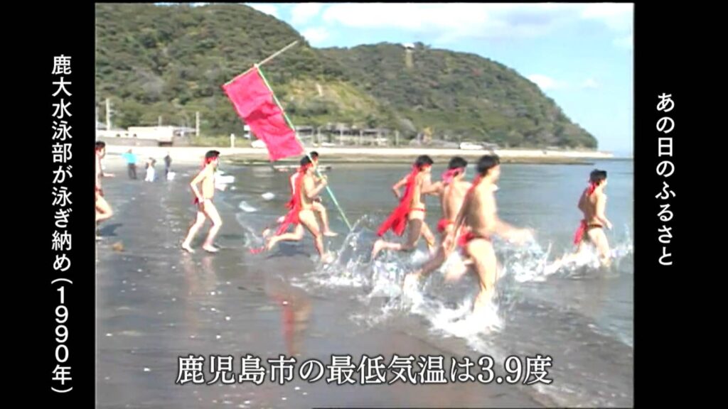 鹿大水泳部が磯海水浴場で泳ぎ始め 鹿児島市・1990(平成2)年12月16日
