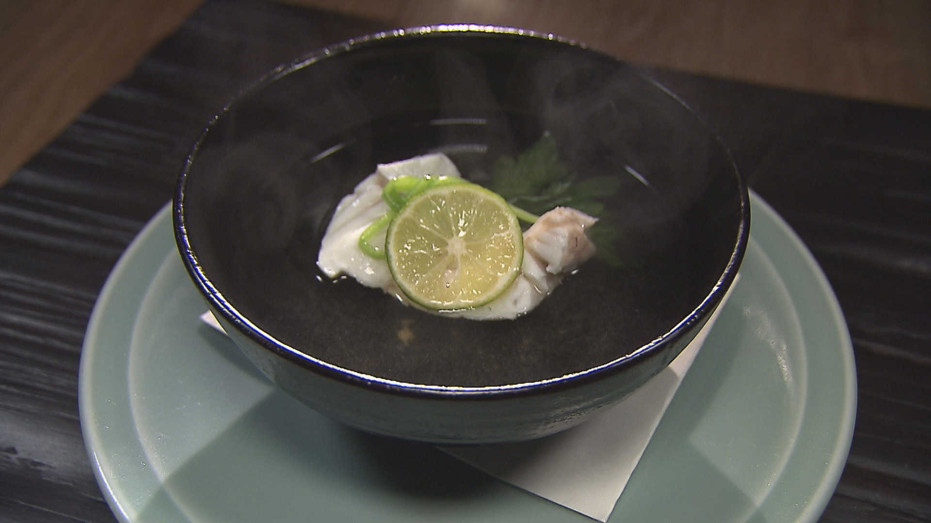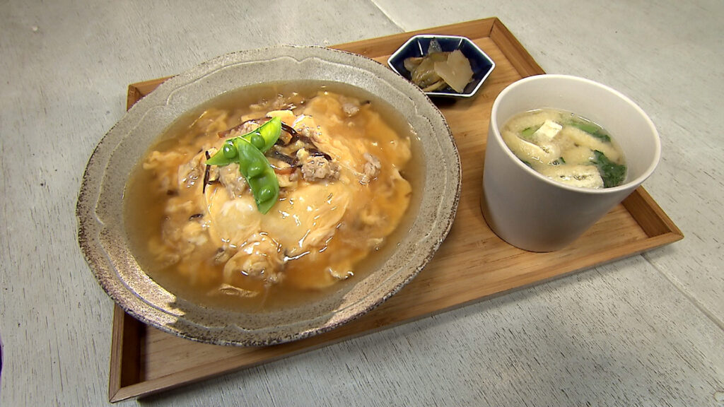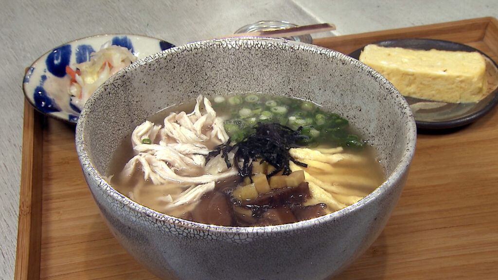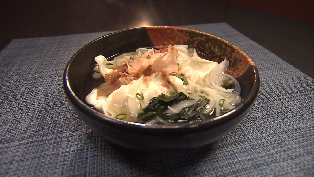 かつお節生産量日本一の枕崎では、リポーターの上園さんがおだしの教室を体験。財津さんは枕崎のご当地そばを堪能します。