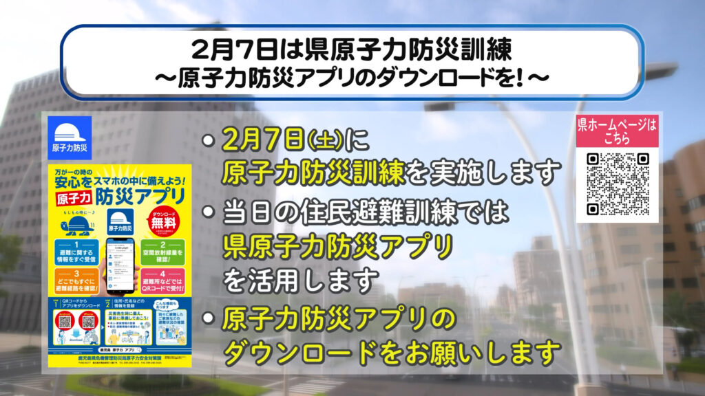 2月7日は県原子力防災訓練~原子力防災アプリのダウンロードを!~