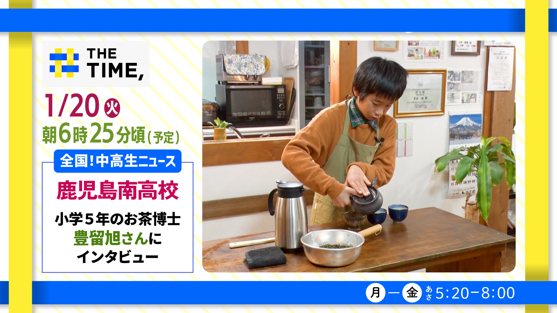 1/20(火)朝6時25分頃 鹿児島南高校が登場!『THE TIME,全国!中高生ニュース』
