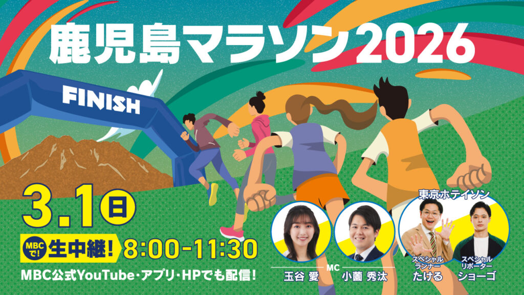 ◆MBCアプリ ▶「投稿・応募・参加」→「番組へメッセージを送る」から、番組名「鹿児島マラソン2026」を選んで投稿してください。