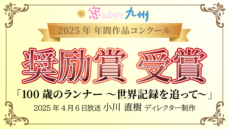JNN九州各局共同番組「新 窓をあけて九州」(日曜午前10時~)の2025年 年間作品コンクールが行われ、MBCが制作した「100歳のランナー ~世界記録を追って~」が奨励賞を受賞しました!