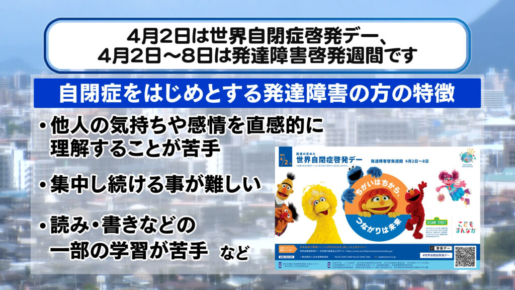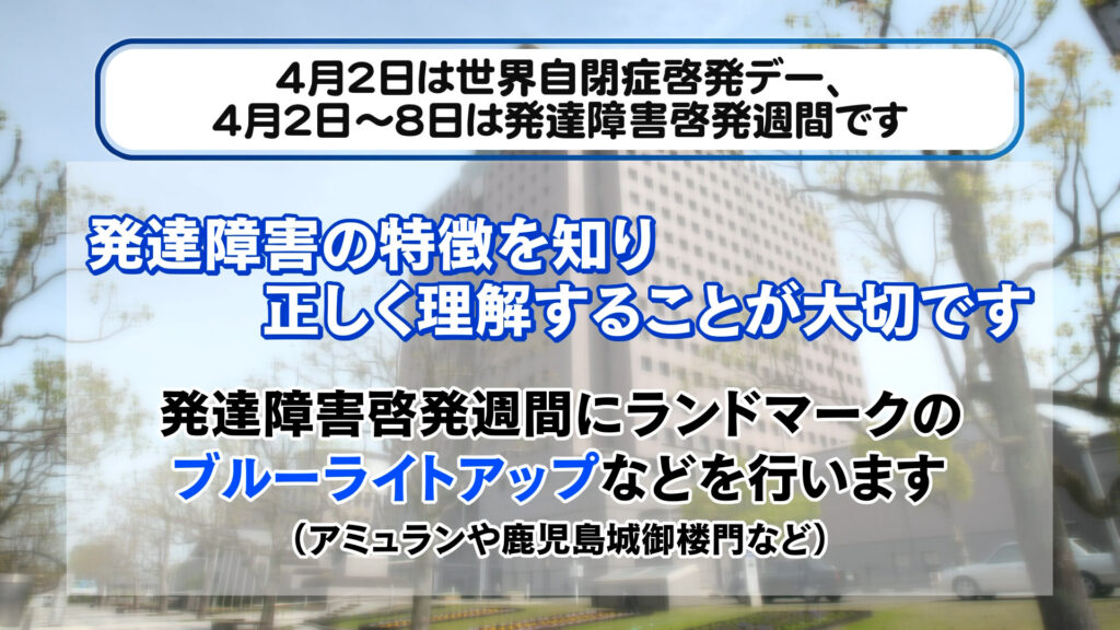 4月2日は世界自閉症啓発デー、4月2日~8日は発達障害啓発週間です
