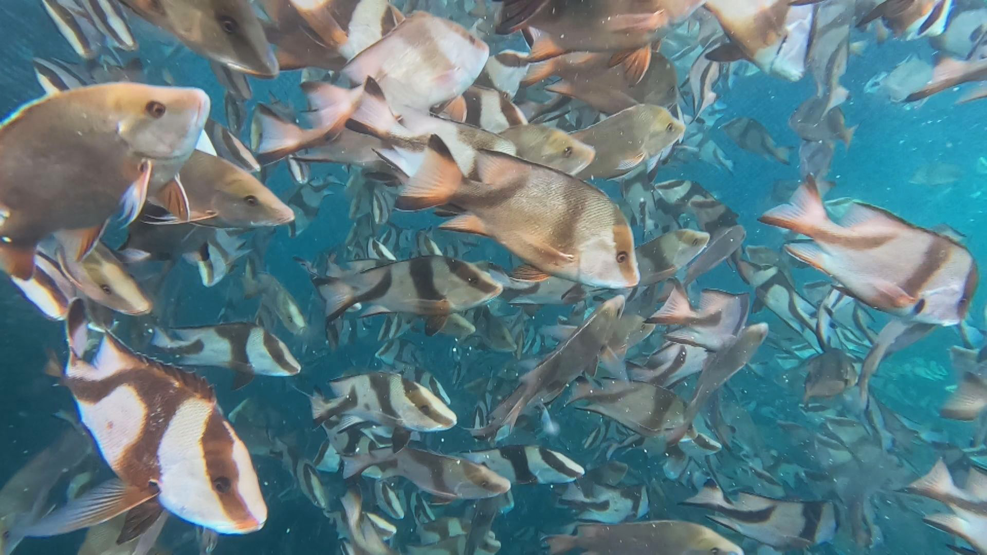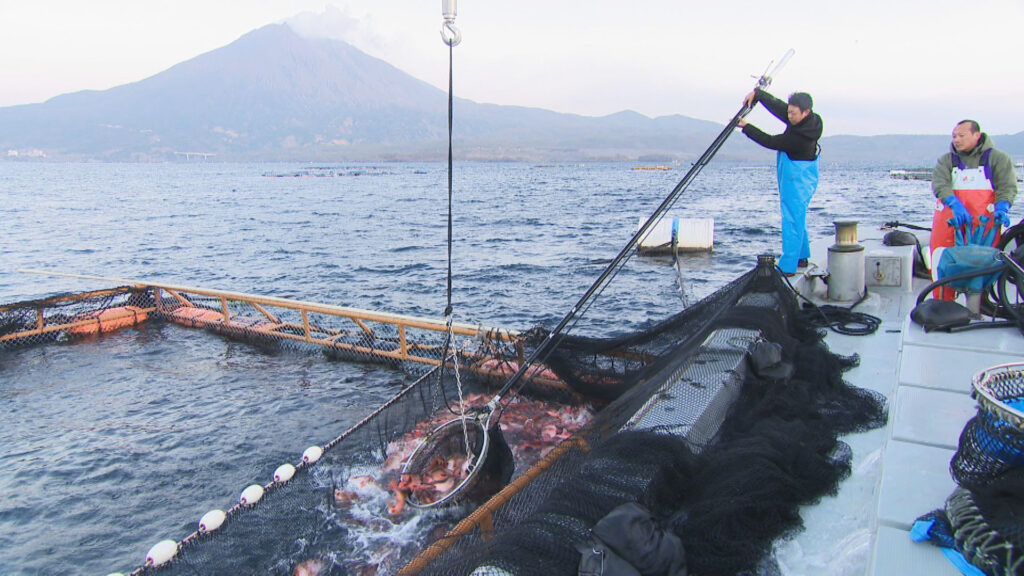 鹿児島の錦江湾で養殖される「千年鯛」。