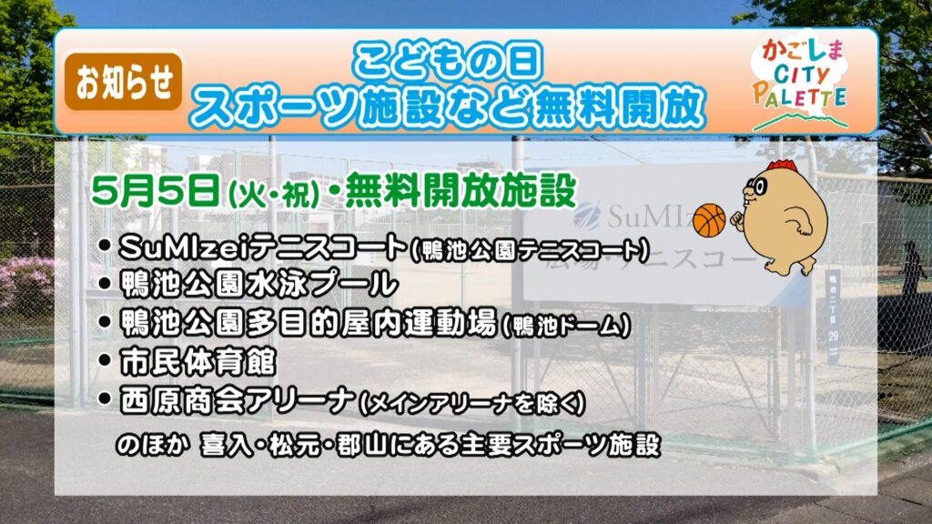 [お知らせ] こどもの日 スポーツ施設など無料開放