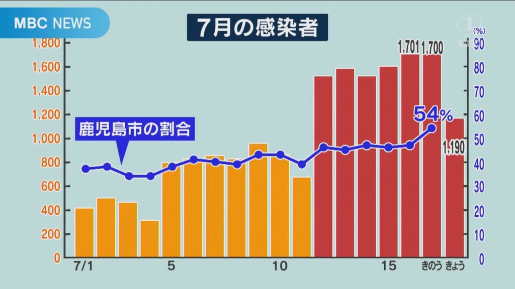 今年の年明けから春先にかけてのいわゆる「第6波」の感染拡大時期も鹿児島市の割合が高い傾向が見られ、県内でこれからさらに感染が拡大するおそれもあります。