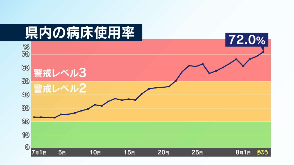 鹿児島県の新型コロナの病床使用率は、4日時点で72%となりました。前日より3.3ポイント上昇し、今年初めて70%台になりました。