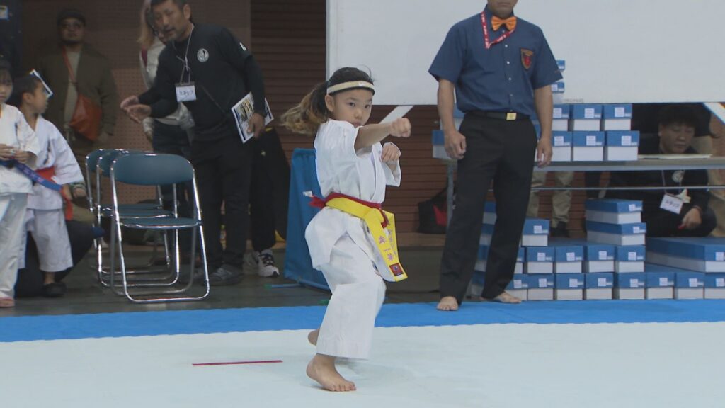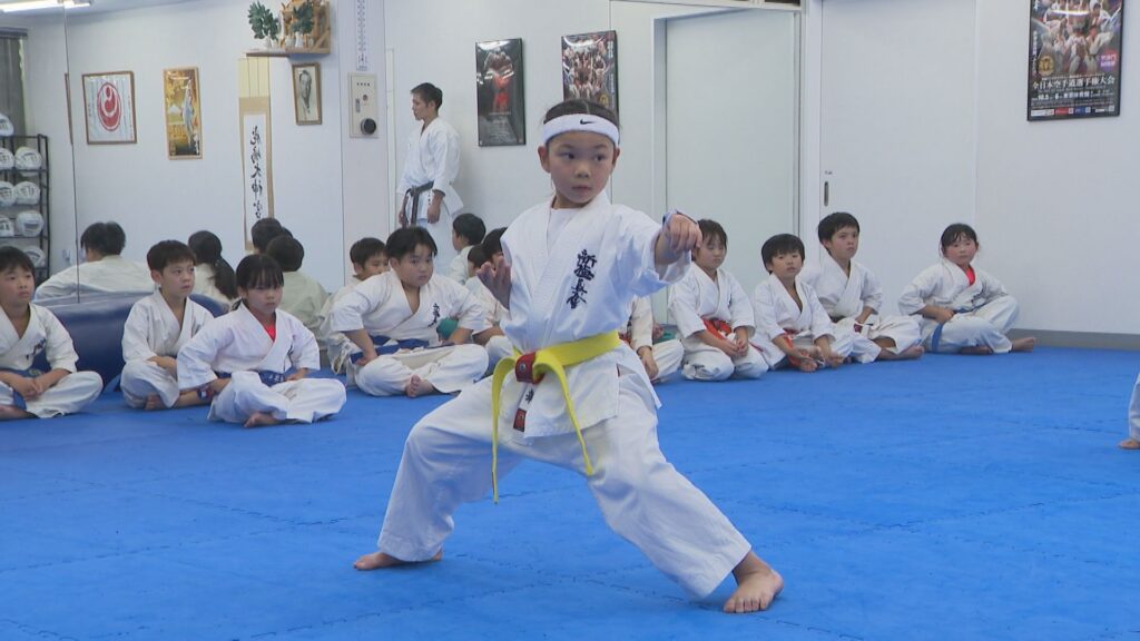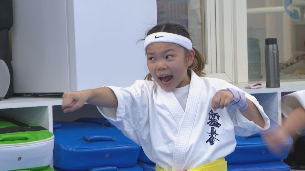 空手道場で人一倍大きな声を出すのは森一華(8)さん。