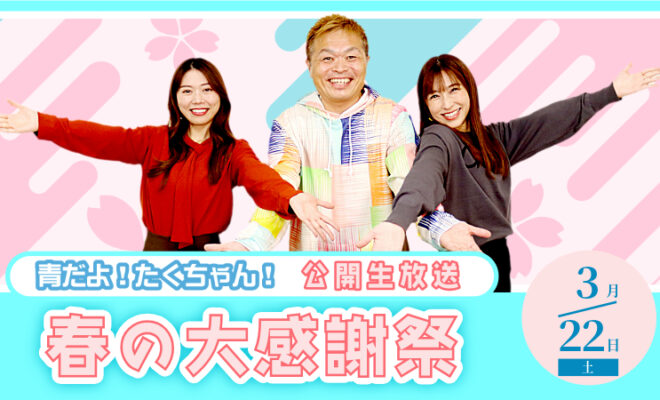 【募集締め切りました】公開生放送『青だよ!たくちゃん!春の大感謝祭』3月22日(土)開催決定!