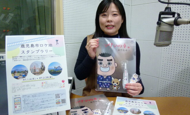 1月6日から鹿児島市でスタートしている「鹿児島市ロケ地スタンプラリー」を紹介しました。ご出演は、「鹿児島市ロケ地スタンプラリー」 担当の池田 真由美さんでした。プレゼントは、「鹿児島市の西郷どんグッズ詰め合わせ(クリアファ…