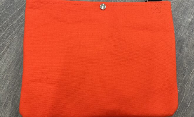 軽く糊がついた弱撥水タイプの帆布製サコッシュは大きいサイズで、内側には便利なポケット付。ストラップが黒の太いバージョン、長さは調節できます。本体の色は、とってもカラフル!上はボタン留めで、サッと物が出し入れ…