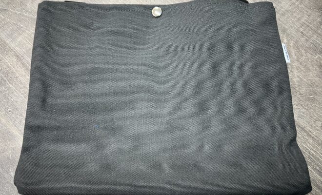 軽く糊がついた弱撥水タイプの帆布製サコッシュは大きいサイズで、内側には便利なポケット付。…