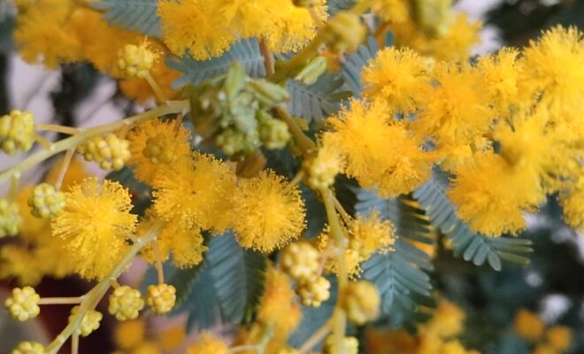 RN. ジャスミン さんお花屋さんに前もって電話していて、仕事帰りにミモザの花を買いました。早々に、花瓶にさしましたよ。黄色い、ふわふわした花が可愛いです。…