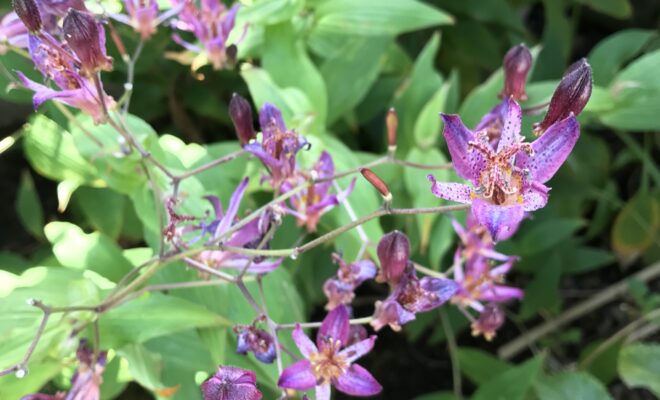 RN. そうじ魔女 さん我が家の庭ではホトトギスの花が満開です。 例年ならもっと花の時期は早いのですが、今年は夏が長かったせいか、満開になるのが遅くなったようです。 やや湿った日陰が好きな花で、物置の北側で咲いています。秋の風情溢…