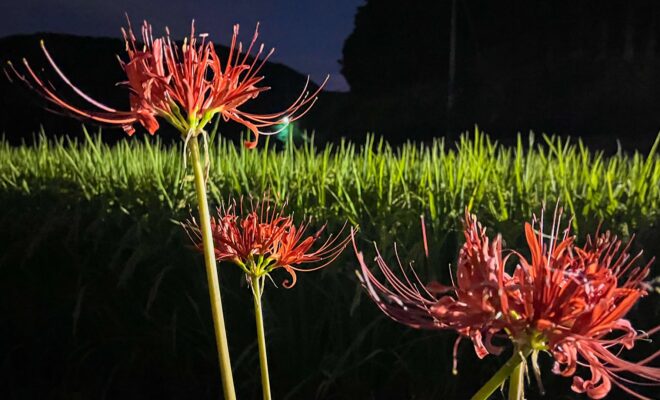 亀田気象予報士からステキな写真頂きました~~~↓↓↓昨日も県内では35度以上の猛暑日を記録したところがありましたが、どこかに小さな秋はないだろうかと、鹿児島市春山の田んぼを歩いていたら、3輪のヒガンバナが咲いていました。近くを通り…