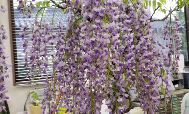 RN. ぱぱんがぱんこ さん近所の郵便局で見事な藤が満開でした。盆栽に仕立ててあり、大きさは40cmくらい。でもなかなかの迫力でしたよ。季節が早足で進んでいます。…