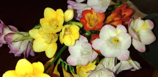 RN. 幸せな猫の足音 さん先日私の実家の庭から、母の育てたフリージア、貰ってきました。台所の窓際…